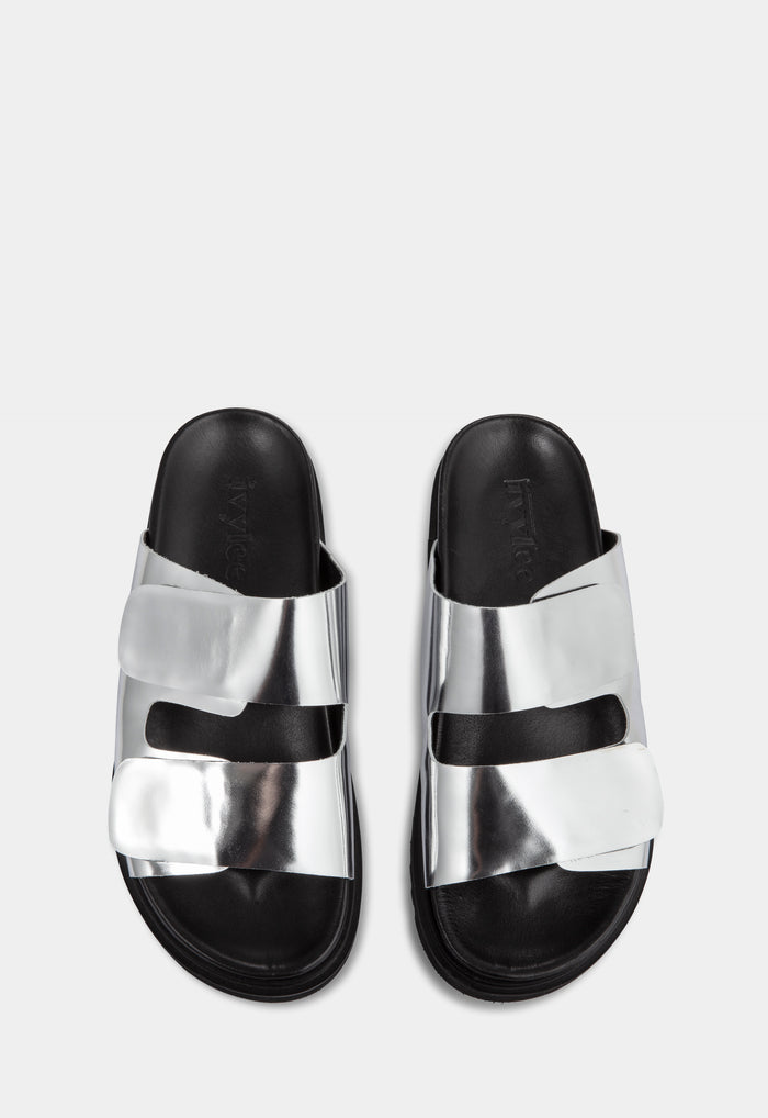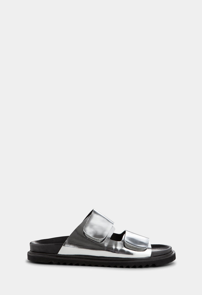 The Ivylee slides are a cult favourite. This version is made from mirror metallic leather, closes with adjustable velcro and is grounded on chunky and cleated soles. Slip yours on with everything from jeans to dresses.