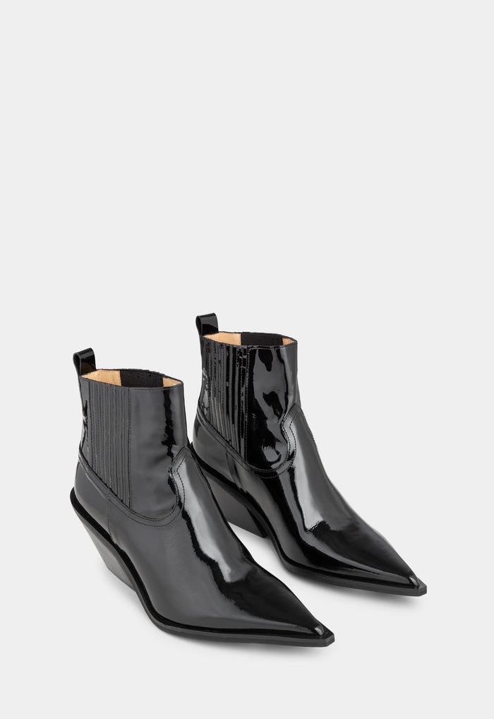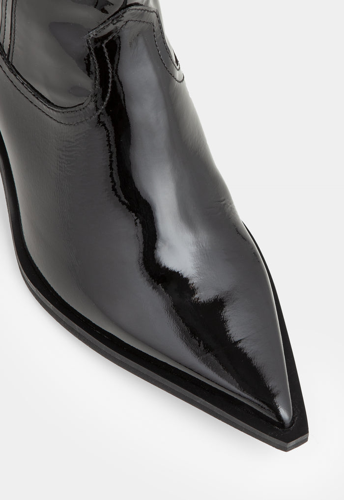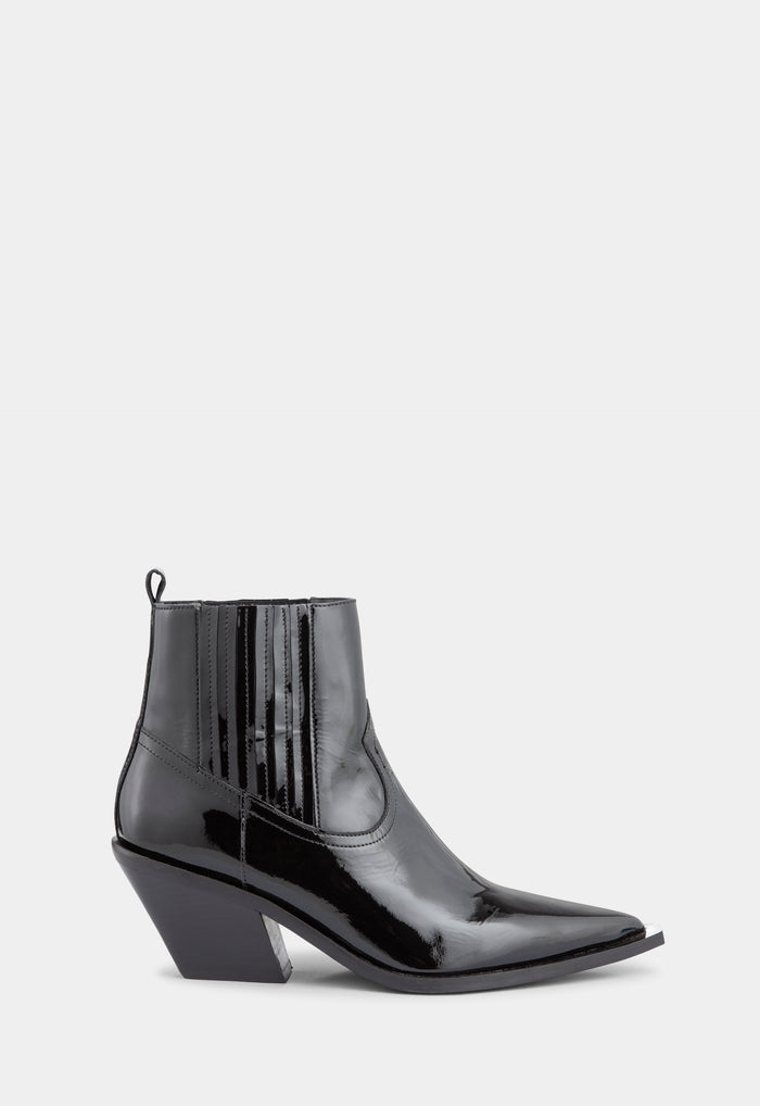 Inspired by the classic cowboy boot, the Ellison Boot has a relaxed, Western-inspired silhouette. Set on a visible sole, the boot has stretchy ribbed panels for comfort, beautiful detailing over the arch and an ultra-pointy nose.