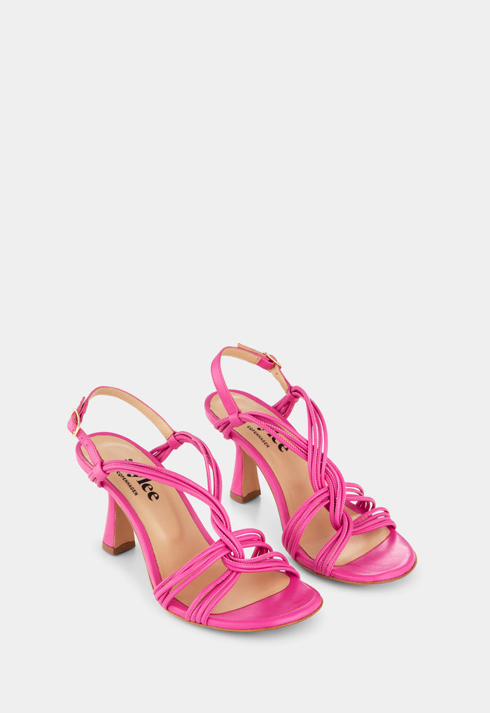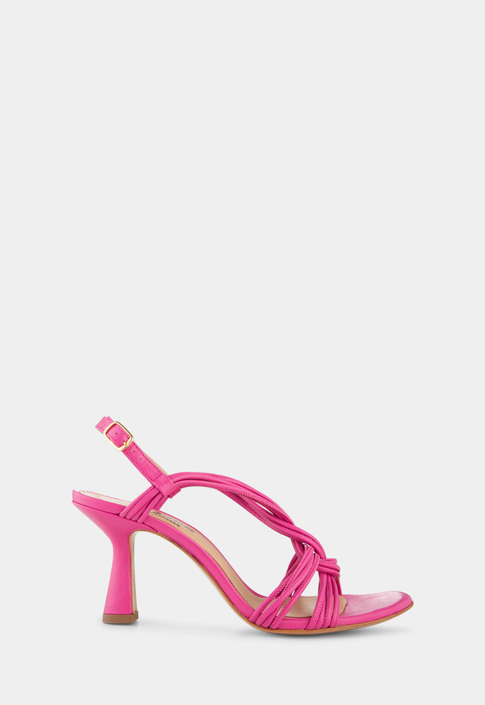 Set on kitten heels, the Flora Sandals made from nappa leather have slim cutout straps that beautifully twit over the wrist and frame the foot. The sandal closes with an adjustable ankle strap that fastens with a metal buckle.