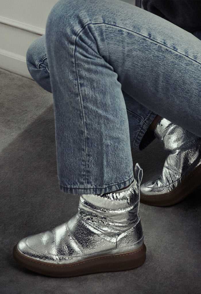 The ultra-comfortable and padded Moon Boot is made from smooth and quilted nappa leather. Set on high rubber sole and an innersole made from wool, these boots will take you fashionably through the cold months.